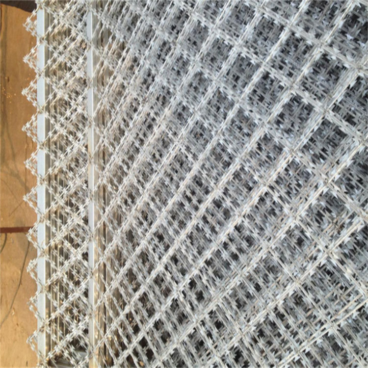 刀片刺繩是沖剪鋼板成銳利的尖刀帶子,然后包裹中碳鋼絲(筋絲)之上。刀片刺絲是從海外引進(jìn)的絕對(duì)禁止通過的新型隔離產(chǎn)品。鋒利的刀片刺絲由雙根線扣卡子組裝后成蛇腹?fàn)睿屓丝吹讲缓?,能夠起到了恐嚇作用,?shí)際上人挨上刀片刺絲就被劃破,實(shí)際效果明顯。該產(chǎn)品施工便利便捷。深受軍隊(duì)和警察喜好。各國已將刀片刺網(wǎng)廣泛用于飛機(jī)場、軍事重地、邊境線、監(jiān)獄、政府機(jī)關(guān)、銀行,以及別墅的圍墻、高速公路、鐵路護(hù)欄等地。