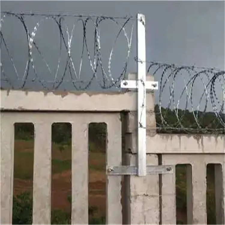 工程案例鐵路刺絲滾籠主要包括刀片剌網(wǎng),刺繩,和支架等.安裝好后具有很好的阻嚇效果,與能起到相同作用的產品比起來性價比是高很多的.主要制作工藝就是由熱鍍鋅鋼板或者不銹鋼鋼板沖壓出尖銳的刀片,然后由高張力鍍鋅鋼絲或者不銹鋼絲來做芯線組合構成的防護產品。刀片刺繩由沖切鋼板采用機械壓軋在鋼絲上成型,刀刺寬度22mm,兩刃垂直間距15mm,刀刺縱向間距34mm,芯絲直徑為2.5mm。刀片采用厚度0.5mm的Q195鋼板沖切制作,芯絲由HPB300?6.5mm高線鋼絲加工。