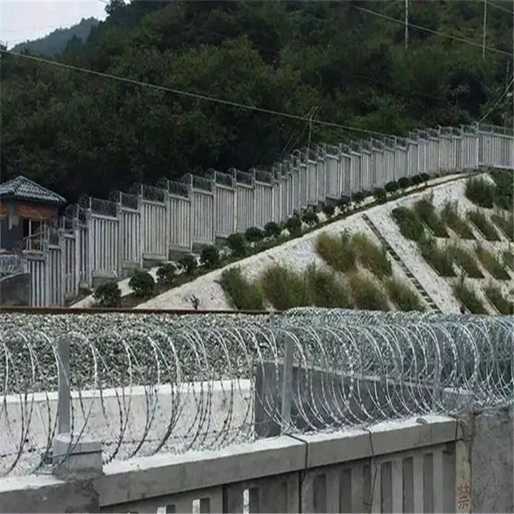 刺絲滾籠主要包括刀片剌網(wǎng),刺繩,和支架等.安裝好后具有很好的阻嚇效果,與能起到相同作用的產(chǎn)品比起來(lái)性價(jià)比是高很多的.主要制作工藝就是由熱鍍鋅鋼板或者不銹鋼鋼板沖壓出尖銳的刀片,然后由高張力鍍鋅鋼絲或者不銹鋼絲來(lái)做芯線組合構(gòu)成的防護(hù)產(chǎn)品。