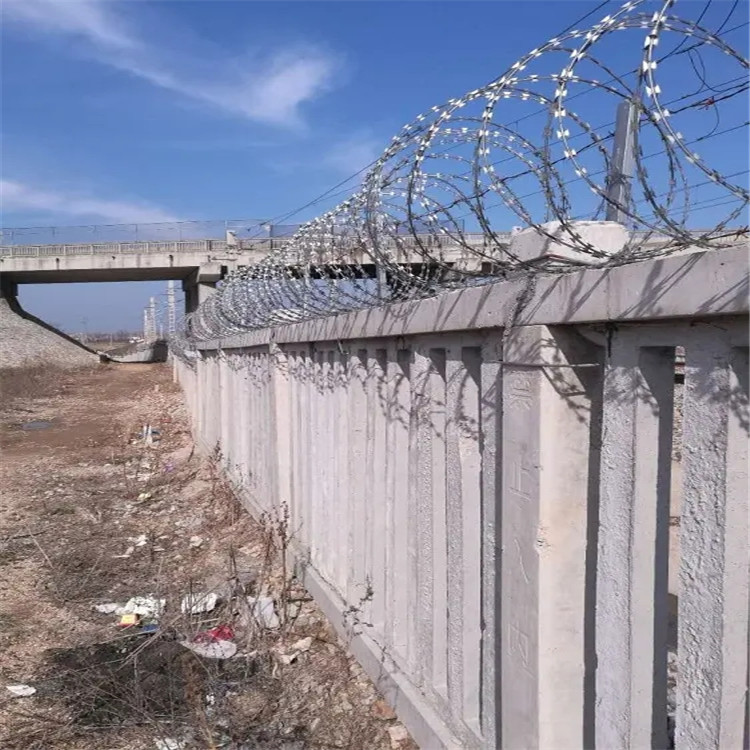 刺絲滾籠主要包括刀片剌網(wǎng),刺繩,和支架等.安裝好后具有很好的阻嚇效果,與能起到相同作用的產(chǎn)品比起來性價比是高很多的.主要制作工藝就是由熱鍍鋅鋼板或者不銹鋼鋼板沖壓出尖銳的刀片,然后由高張力鍍鋅鋼絲或者不銹鋼絲來做芯線組合構(gòu)成的防護(hù)產(chǎn)品。