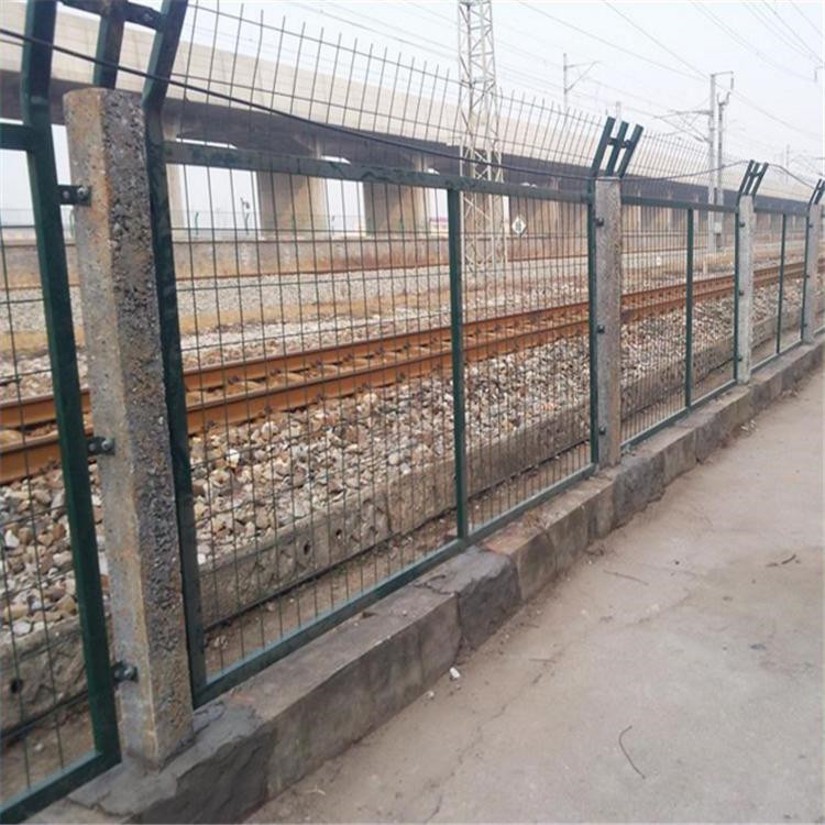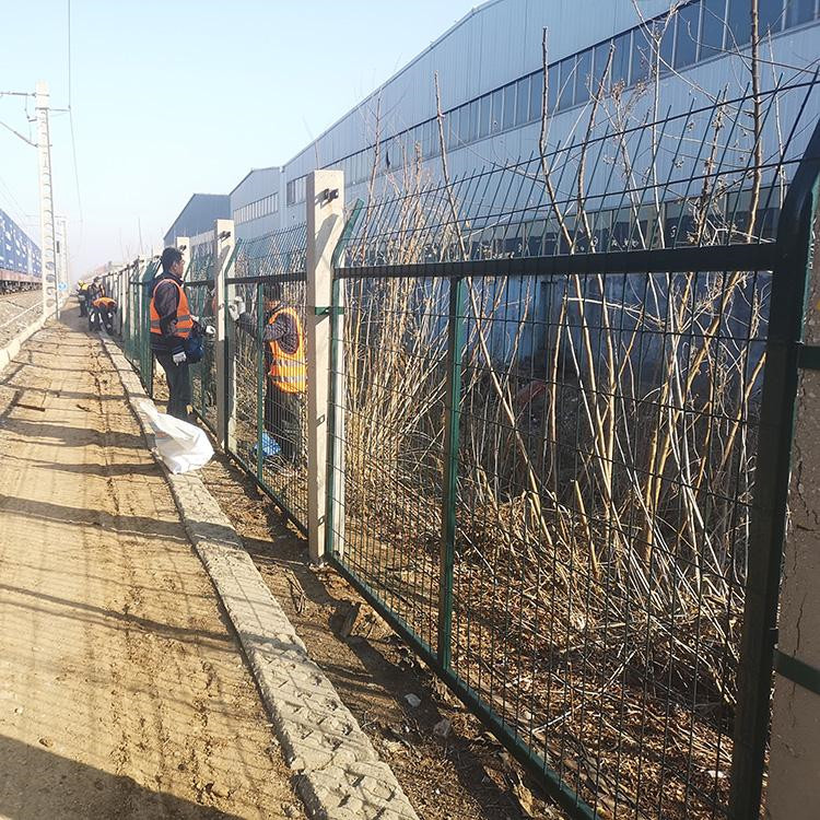 鐵路防護網(wǎng)安裝方法步驟:先用M10*142mm的螺栓穿過水泥立柱上預留的孔,同時用配套的防盜墊圈和螺母將兩個連接板A分別固定于混凝土立柱兩側;再用M10*22mm的螺栓,配相應的防盜墊圈和螺母將連接板A和連接板B固定;調整金屬網(wǎng)片垂直、水平度,用專用工具講螺栓、螺母固定牢固即可。防護柵欄安裝時做到:嚴、齊、順、美,橋下封閉不得留有空隙,柵欄方向沿橋梁方向順直。 應對柵欄兩側地面進行平整壓實,當柵欄設置在坡地或柵欄兩側存在高低差時,應將柵欄兩側范圍高出部分進行平整,保證柵欄對于兩側地面均達到防護高度。