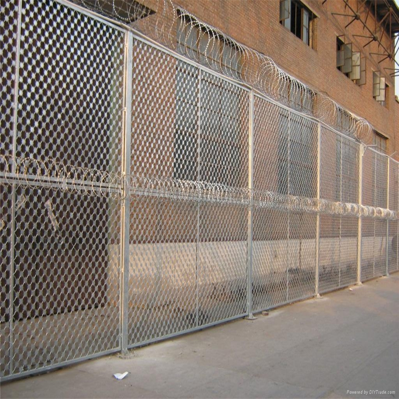 2、監(jiān)獄圍欄網(wǎng)的鐵絲網(wǎng)直徑為2.5mm,鋼板厚度為0.5mm,