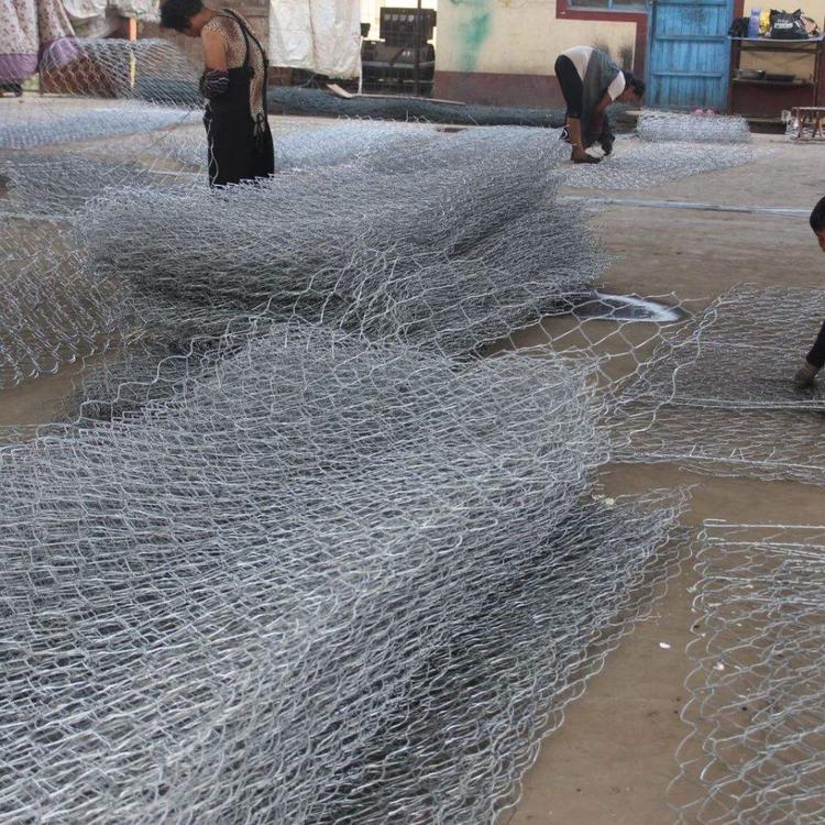 石籠網(wǎng)采用六角擰編而成過程為:原材料選?。ūP條)——冷拔/鍍鋅/包塑——機器編織——人工剪切、組裝——產(chǎn)品檢驗——包裝運輸