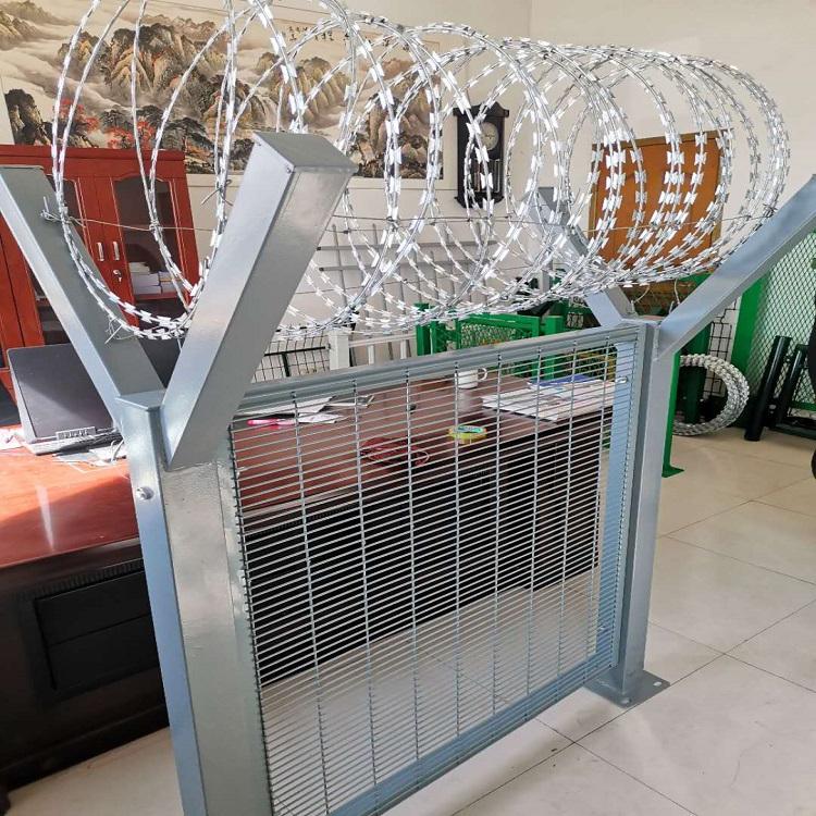 飛機(jī)場圍界又稱作“Y型安全防御護(hù)網(wǎng)”,是由V型支架立柱,加強(qiáng)型焊接片網(wǎng),安全防盜連接件和熱鍍鋅刀片刺籠組成強(qiáng)度和安全防御性級(jí)別很高。近年來,被廣泛應(yīng)用在機(jī)場,軍事基地等高安全場所。在隔離網(wǎng)頂部加裝刀片刺絲、刀片刺繩后又很好的增強(qiáng)了防護(hù)性能。