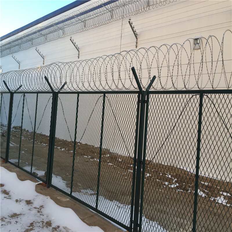工程案例監(jiān)獄鋼網(wǎng)墻是非常重要的監(jiān)管場(chǎng)所安全防護(hù)設(shè)施,由Y型立柱支架、加強(qiáng)型焊接片網(wǎng)、安全防盜連接件和熱鍍鋅刀片刺網(wǎng)組成的強(qiáng)度和安全防御性級(jí)別很高的產(chǎn)品。現(xiàn)被廣泛應(yīng)用在監(jiān)獄、看守所、軍事基地等高安全場(chǎng)所,可在平地安裝,也可在圍墻上二次安裝,極具嚇阻作用,有效防止人為攀爬。采用電鍍、熱鍍、噴塑、浸塑等防腐形式,具有很好的抗腐蝕、抗強(qiáng)風(fēng)、抗剪切、抗沖擊等特點(diǎn)。