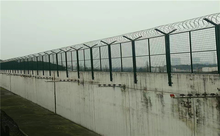 監(jiān)獄護(hù)欄網(wǎng)又稱作"Y型安全防御護(hù)網(wǎng)"和機(jī)場(chǎng)護(hù)欄網(wǎng)通用,是由V型支架立柱,加強(qiáng)型焊接片網(wǎng),安全防盜連接件和熱鍍鋅刀片刺籠組成強(qiáng)度和安全防御性級(jí)別很高。近年來(lái),被廣泛應(yīng)用在監(jiān)獄,軍事基地等高安全場(chǎng)所。注:如果在監(jiān)獄護(hù)欄網(wǎng)頂部加裝刀片刺絲、刀片刺繩后又很好的增強(qiáng)了安全防護(hù)性能。采用電鍍、熱鍍、噴塑、浸塑等防腐形式,具有很好的抗老化、抗曬、耐候等特點(diǎn)。其產(chǎn)品造型美觀、花色多樣,既起到圍欄作用,又起到美化作用。由于具有安全性高、防攀爬能力好,網(wǎng)片連接方式采用特制SBS緊扣件,有效防止人為的破壞性拆卸,橫向四道折彎加強(qiáng)筋,使網(wǎng)面強(qiáng)度顯著增加。