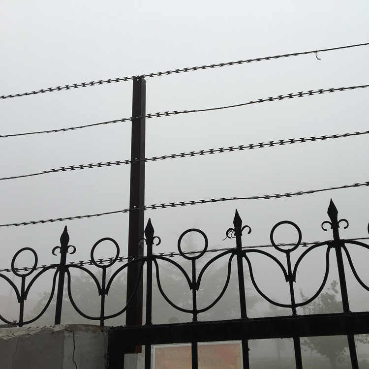 直條型刀片刺繩表面防腐處理有電鍍鋅、熱鍍鋅以及鍍鋅噴塑(顏色隨意選擇),根據(jù)客戶的要求,做不同的處理。其主要用于監(jiān)獄護(hù)欄網(wǎng)、軍事護(hù)欄網(wǎng)、機(jī)場(chǎng)護(hù)欄網(wǎng)、小區(qū)防盜網(wǎng)、廠區(qū)圍墻防盜網(wǎng),與其他護(hù)欄網(wǎng)相結(jié)合防護(hù)作用會(huì)很好。監(jiān)獄基本上用的都是刀片刺網(wǎng)。