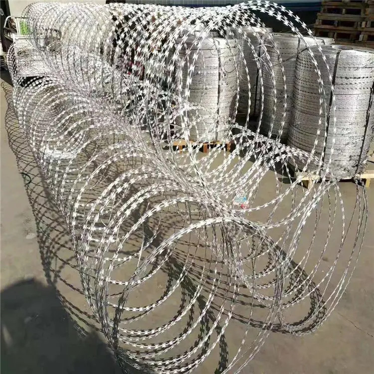新聞動(dòng)態(tài)蛇腹式刀刺網(wǎng)( 也叫螺旋式刀刺網(wǎng)),我們簡(jiǎn)稱刀刺網(wǎng)。常用材質(zhì):熱鍍鋅,不銹鋼304。目前我國(guó)的絕大部分監(jiān)獄已經(jīng)淘汰了熱鍍鋅刀刺網(wǎng),選用不銹鋼304材質(zhì),解除了兩年一銹一年一換的后顧之憂,高鐵上面用的刀片刺繩用的是直徑500毫米的,拉開間距為20公分,表面進(jìn)行熱鍍鋅處理,一般環(huán)境用120克上鋅量,特殊環(huán)境用鍍鋅量270g的。
