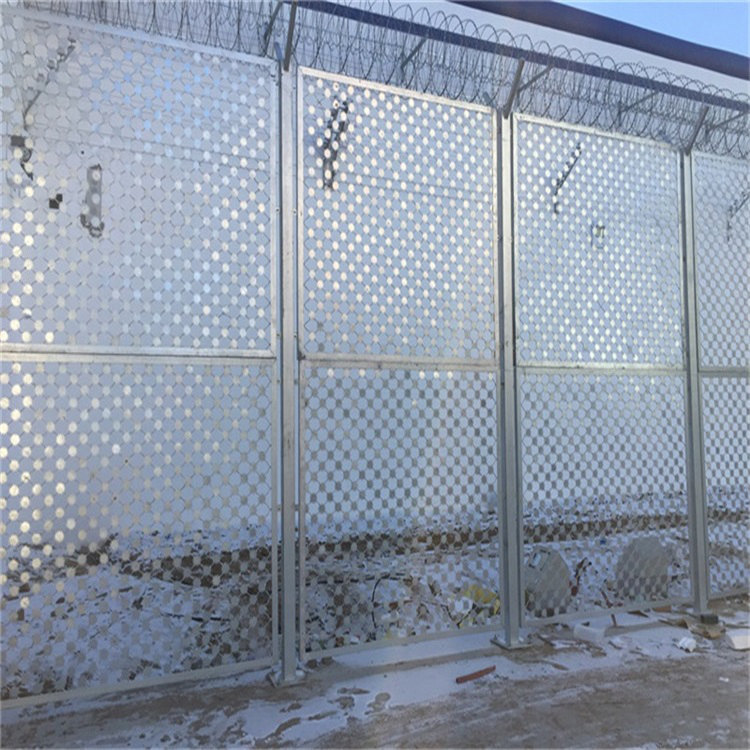 新聞動態(tài)監(jiān)獄鋼網(wǎng)墻又稱作“Y型安全防御護(hù)網(wǎng)”,是由V型支架立柱加強(qiáng)型焊接片網(wǎng),安全防盜連接件和熱鍍鋅刀片刺網(wǎng)組成強(qiáng)度和安全防御性級別很高。被廣泛應(yīng)用在監(jiān)獄,軍事基地等高安全場所。