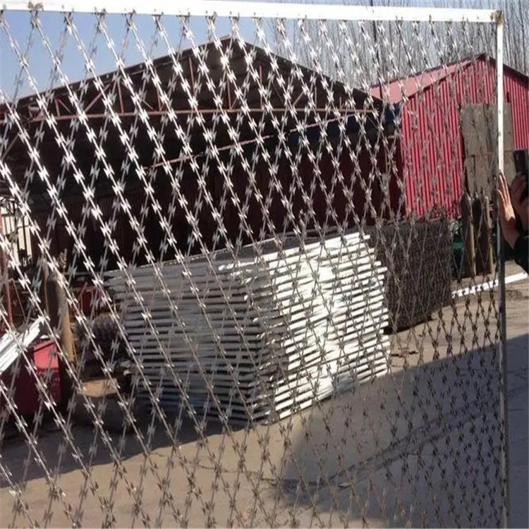 新聞動(dòng)態(tài)刀刺網(wǎng)是一種近年發(fā)展起來的防護(hù)、隔離能力較強(qiáng)的新型防護(hù)網(wǎng)產(chǎn)品。刀刺網(wǎng)它采用鋼板沖壓成型包附于熱鍍鋅鋼絲之上,由鍍鋅鋼板或不銹鋼薄板做刀片,高張力鋼絲做芯線組合而成的。鋒利的刀型刺由雙線扣裝后成蛇腹?fàn)睿让烙^又讓人不寒而栗。起到了很好的阻嚇作用。