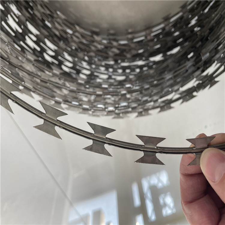 刀片刺網(wǎng)又名刮刀型刺絲,是一種近年發(fā)展起來的防護、隔離能力較強的新型防護網(wǎng)產品。鋒利的刀型刺由雙線扣裝后成蛇腹狀,既美觀又讓人不寒而栗。起到了很好的阻嚇作用。同時該產品具有美觀、防阻效果好、施工便利等優(yōu)點。