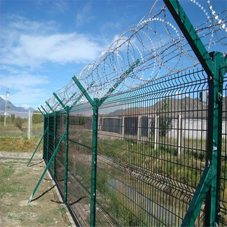新聞動態(tài)Y型安全防御護網(wǎng)可用作監(jiān)獄鋼網(wǎng)墻也可用作機場圍界,是由V型支架立柱加強型焊接片網(wǎng),安全防盜連接件和熱鍍鋅刀片刺網(wǎng)組成強度和安全防御性級別很高。被廣泛應(yīng)用在監(jiān)獄,軍事基地等高安全場所。立柱為60X60的矩形鋼,頂端焊有V型之架,或者采用70mmX100mm的掛式連接立柱。立柱高度2.5米成Y字型,在2米高的網(wǎng)片上邊架上直徑50cm或60cm的刀刺網(wǎng),整體下來高度2.5米,是無法攀爬或翻越的,在孔徑選擇上邊一般5cmx10cm的就可以了。