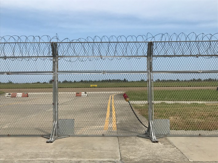 機(jī)場隔離網(wǎng)的安裝要求護(hù)欄網(wǎng)的整體安裝高度要3米以上,網(wǎng)片與網(wǎng)片間隙不能大于10公分,立柱與網(wǎng)片連接離地部分不能大于5公分,立柱垂直高度為3.5米,每套安裝整齊劃一,機(jī)場隔離網(wǎng)上部分采用60直徑的熱鍍鋅刀片刺繩,刺繩的刀片與刀片間隔為20cm。正常的情況下每米出1.2kg左右的刺繩。安裝的同時采用卡扣卡在V型網(wǎng)上面。這樣有利于熱鍍鋅刀片刺繩的穩(wěn)固性能。