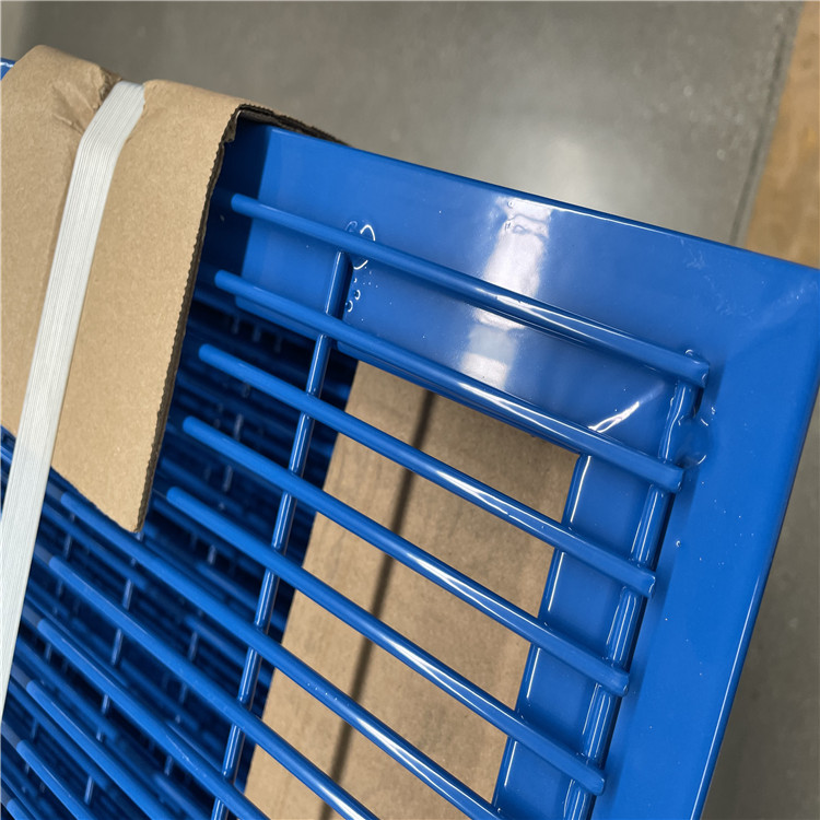 358防爬密紋網規(guī)格:1、立柱采用:100x100x3.0鋼方通,材質為:Q235B; 立柱間距不應大于2.5米,且轉角處、縱橫墻交接處應設立柱; 2、邊框采用:40x40x2.0鋼方通,材質為:Q235B; 3、雙臂彎采用:40x40x2.0鋼方通,材質為:Q235B; 4、鋼板壓條采用:80x2.0扁鋼,材質為:Q235B; 5、立柱、邊框、雙臂彎和鋼板壓條均采用“熱鍍鋅+表面噴涂”雙重防腐處理,耐腐蝕年限不應少于10年; 6、所有螺栓采用防拆卸螺栓。7、鋼絲直徑4mm,橫向間距100mm,豎向間距12.5mm; 8、鋼絲材質為:CDW550級冷拔低碳鋼絲; 9、網片焊點抗拉力不應小于2KN。10、鋼絲網采用“熱鍍鋅+表面噴涂”雙重防腐處理,耐腐蝕年限不應少于10年。11、蛇腹型刺刀網圈徑600mm,每米長度不應少于7圈,圈距排列應均勻; 12、刀片形式為TOB-22(芯線直徑2.5mm,刀片厚0.5mm,刀片長22mm,刀片寬15mm,刀片間距36mm)材質為304不銹鋼。