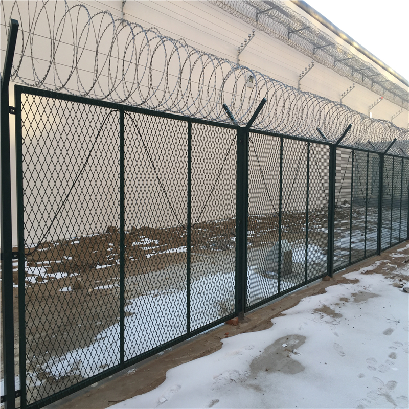 看守所隔離網(wǎng)是非常重要的監(jiān)獄安全防護(hù)設(shè)施,由焊接鋼網(wǎng)加蛇腹形刀刺網(wǎng)組合而成。產(chǎn)品具有結(jié)構(gòu)新穎、堅(jiān)固緊密、網(wǎng)面平整、網(wǎng)孔均勻、刀鋒銳利、防攀爬、抗腐蝕性強(qiáng)等特點(diǎn)。建設(shè)于監(jiān)獄的內(nèi)外墻地面及高墻之上,網(wǎng)墻內(nèi)側(cè)或頂部加裝蛇腹形刀刺網(wǎng),形成一道高不可攀、難以逾越的隔離障礙。配合高壓打擊電網(wǎng)、各種監(jiān)控報(bào)警設(shè)備確保監(jiān)獄安全萬無一失。