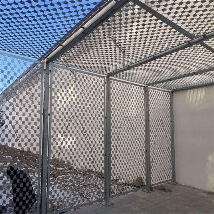 工程案例監(jiān)獄放風(fēng)場(chǎng)隔離網(wǎng)、 監(jiān)獄防御隔離網(wǎng)、 防攀爬隔離網(wǎng)、監(jiān)獄刀片刺網(wǎng)隔離網(wǎng)主要用于園林公寓、機(jī)關(guān)單位、監(jiān)獄、哨所、邊防等的圈禁防護(hù)。刀刺隔離網(wǎng)由銳利尖角鍍鋅鋼板或不銹鋼薄板做刀片,高張力鋼絲做芯線(xiàn)組合而成的阻絕器材。由于刀片刺繩隔離網(wǎng)造形獨(dú)特不易觸摸,因而能達(dá)到很好的防護(hù)隔離效果。直線(xiàn)形刀片刺網(wǎng)由刀片型直線(xiàn)刺網(wǎng)交叉焊接成型,可用于防盜窗、高速護(hù)欄、隔離柵。施工迅速、效果顯著。刀刺隔離網(wǎng),有多種架設(shè)方式可供選擇,施工迅速,既省經(jīng)費(fèi),又可達(dá)到安全隔離網(wǎng)效果。