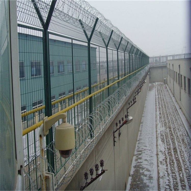 監(jiān)獄隔離網(wǎng)又稱作“Y型安全防御護(hù)網(wǎng)”,是由V型支架立柱,加強(qiáng)型焊接片網(wǎng),安全防盜連接件和熱鍍鋅刀片刺籠組成,強(qiáng)度和安全防御性級別很高。