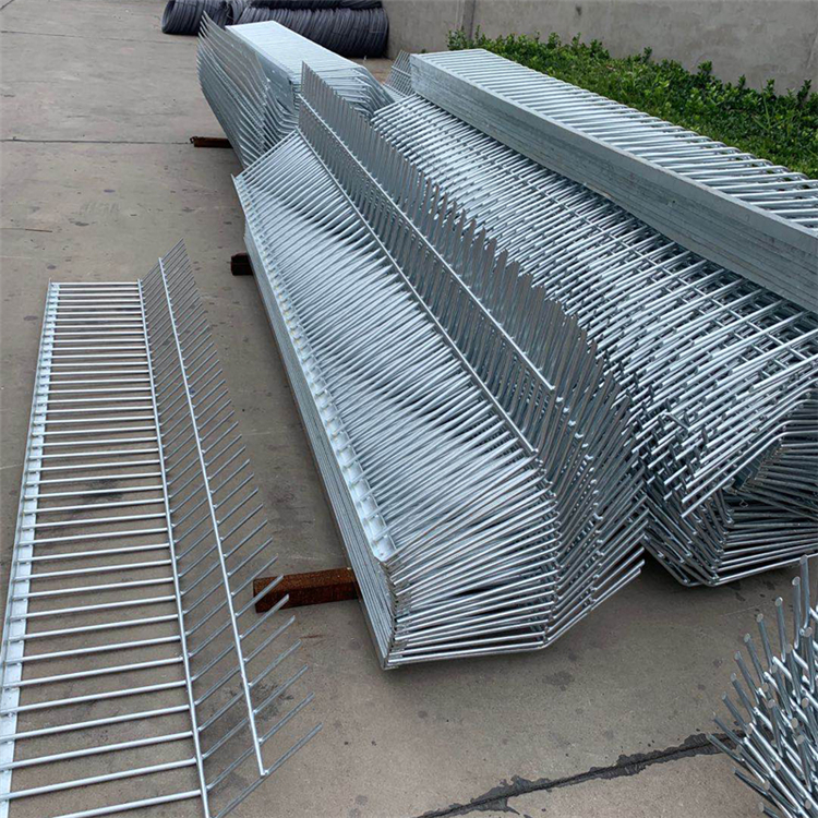 6.現(xiàn)場(chǎng)安裝防爬倒刺與防護(hù)柵欄矩管之間采用Φ12mm鋼筋連接焊接固定。防護(hù)柵欄加密支架、抱箍、刺絲滾籠采用《鐵路線路防護(hù)柵欄》設(shè)計(jì)支架。鐵路防爬刺生產(chǎn)廠家 熱鍍鋅鐵路防爬刺 艾瑞鐵路防爬刺