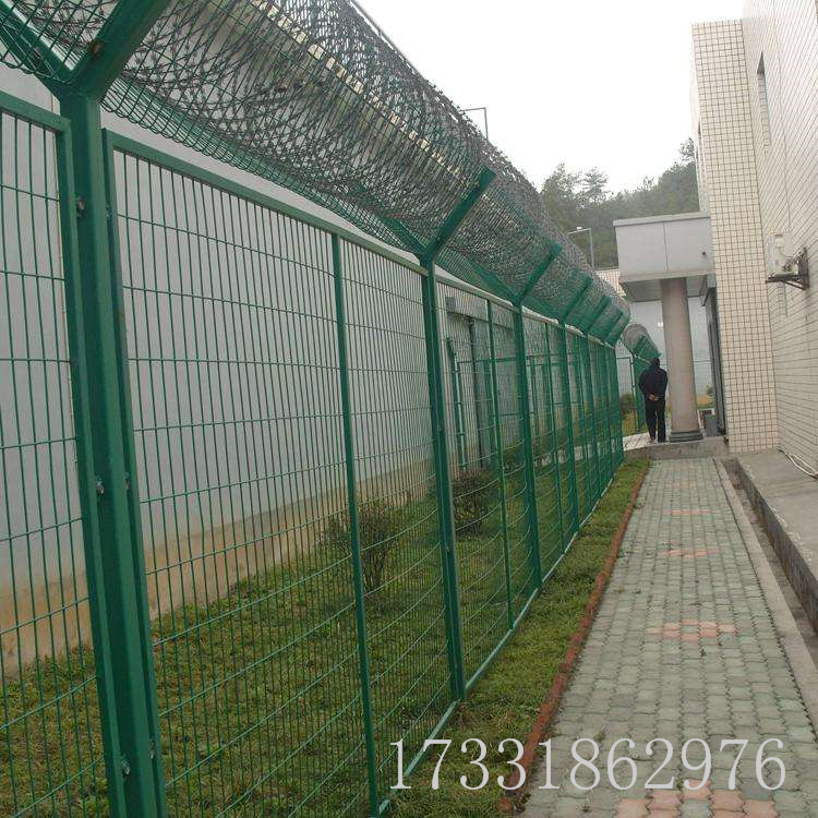 工程案例監(jiān)獄防攀爬隔離柵欄主要分鍍鋅,浸塑兩種,是以立柱網(wǎng)片加刀片刺繩制作而成