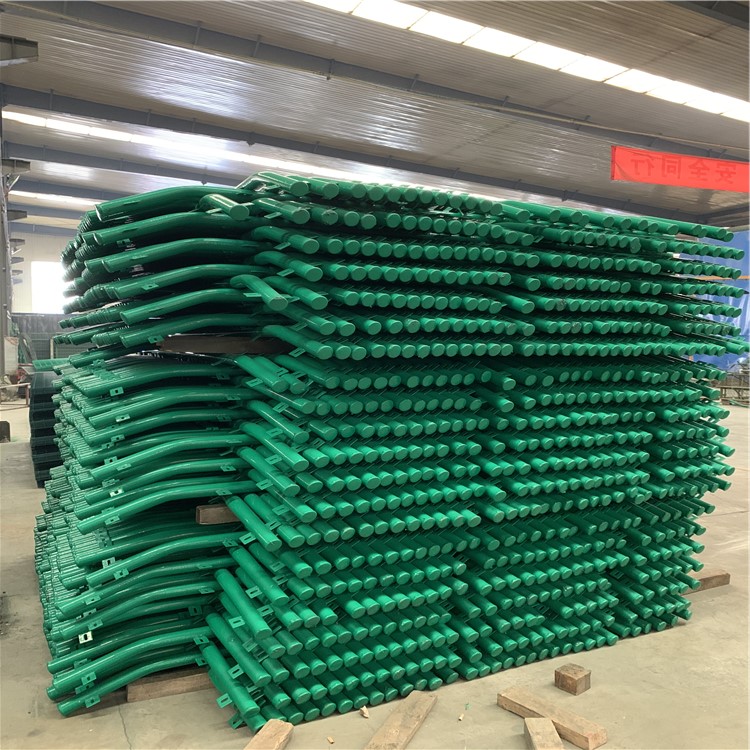公路隔離網(wǎng)防腐處理:經除銹、打磨、鈍化、硫化等工藝后,采用鍍塑處理,色彩為果綠色,鍍層厚度為0.6~1.6mm,鍍粉采用抗老化性能較佳的進口耐候性樹脂粉料,鍍層必須顏色一致,表面光滑,不允許有流掛、滴瘤或多余結塊。鍍件表面應無漏鍍、露鐵等缺陷。