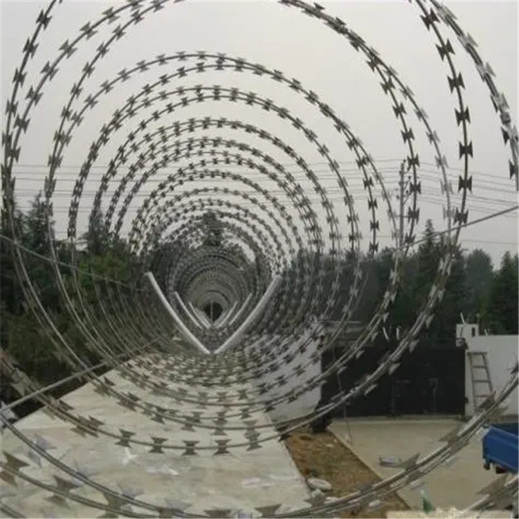 刀片刺繩的安裝方式主要有螺旋形和蛇腹形兩種。螺旋式和蛇腹式的不同之處: