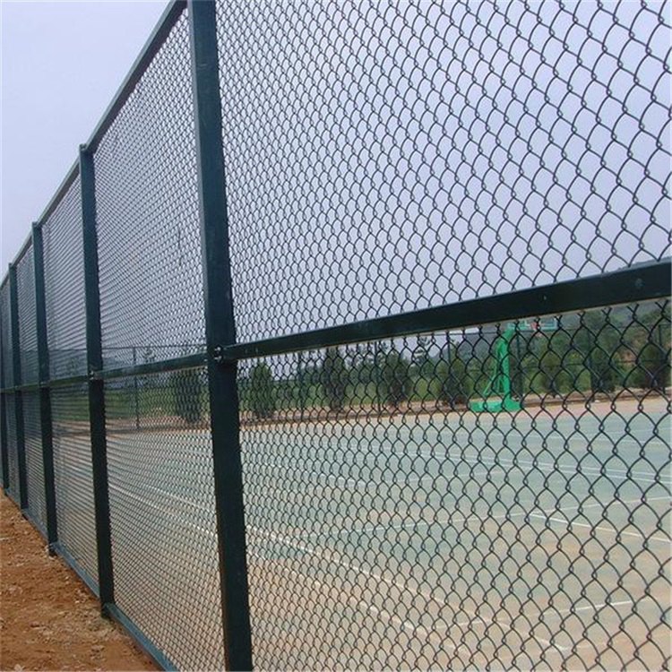 圍網施工工序為:底板固定-網立柱焊接-頂、底橫桿焊接-掛網施工-網門施工、噴漆。焊圍網地板及立柱:測量放線,按設計圖定好網柱及燈柱埋件位置。制作固定件,圍網立柱固定件尺寸為150×150×8,燈柱固定件尺寸 為200×200×10,打膨脹螺絲固定,螺絲長80mm以上。焊接立柱及橫桿。立柱門距為3m,立柱全部焊完后,方可開始焊上、下橫桿, 所有焊接均采電J422焊條,焊縫要求滿焊,焊縫高度及寬度均應大于0.7d。