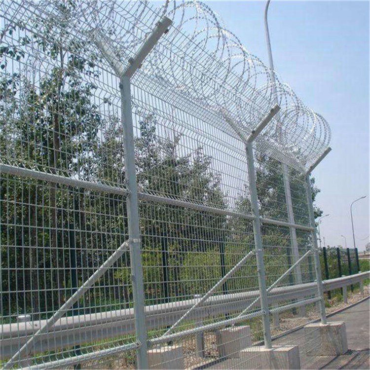 新聞動態(tài)機場鋼筋網(wǎng)圍界采用直徑5.0mm優(yōu)質低碳鋼絲焊接,網(wǎng)孔50mm*100mm,50*200mm,立柱為60X60的矩形鋼或圓管立柱,頂端焊有V型支架,也可采用70mmX100mm的掛式連接立柱。產(chǎn)品均為熱鍍鋅后采用高質量的聚酯粉末靜電噴涂,采用國際流行的RAL顏色。連接方式主要使用M卡,抱卡連接,表面處理常用熱鍍、噴塑、浸塑,常見顏色為綠色。機場鋼筋網(wǎng)圍界防銹是大家共同面臨的問題,畢竟產(chǎn)品是長期使用在戶外的,難免遭受雨水的腐蝕,只有加強防腐工藝,才可以長期使用下去。