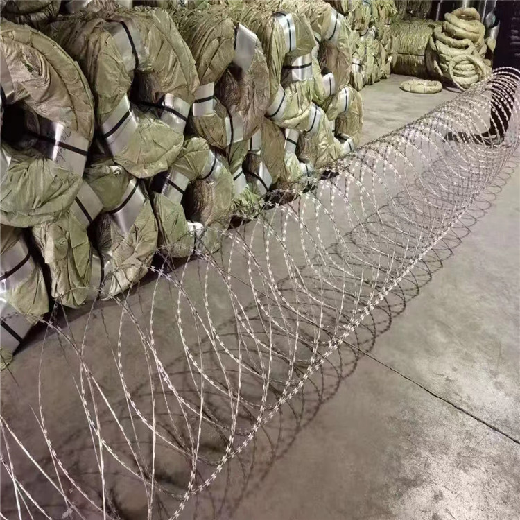 新聞動態(tài)刀刺網(wǎng)是一種近年發(fā)展起來的防護(hù)、隔離能力較強(qiáng)的新型防護(hù)網(wǎng)產(chǎn)品。它采用鋼板沖壓成型包附于熱鍍鋅鋼絲之上,由鍍鋅鋼板或不銹鋼薄板做刀片,高張力鋼絲做芯線組合而成的。鋒利的刀型刺由雙線扣裝后成蛇腹?fàn)睿让烙^又讓人不寒而栗,起到了很好的阻嚇作用。