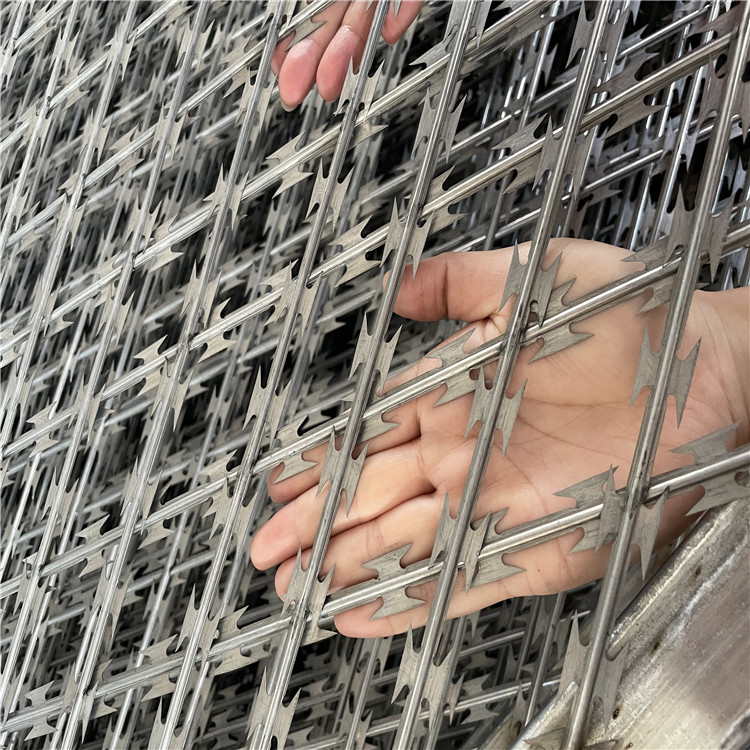 新聞動態(tài)焊接刀片隔離網(wǎng)的防攀爬效果如何?首先來看下制作工藝,是先把刀片刺繩成型之后裁成所需網(wǎng)片直條的長度經(jīng)網(wǎng)片機(jī)焊接成刀刺網(wǎng)片,材質(zhì):芯線優(yōu)熱鍍鋅鋼絲;板材為熱鍍高鋅或者不銹鋼板材。也可以表面噴塑或者涂塑,以達(dá)到更好的防腐耐酸堿的作用,延長使用年限??讖酱笮。?X10、10x15、10x20cm(其他網(wǎng)孔可以根據(jù)客戶需求定做)。一般焊接成菱形孔,因其刀片鋒利造形獨特手不能握腳不能蹬,因而能達(dá)到很好的防護(hù)隔離效果。材質(zhì)選擇要根據(jù)當(dāng)?shù)貧夂?,潮濕的地區(qū)應(yīng)當(dāng)選擇不銹鋼材質(zhì)的防腐效果更佳。具有嚇阻、防翻越等效果,材質(zhì)堅硬,高強(qiáng)度,高張力,造型設(shè)計獨特,不宜觸摸,因而能達(dá)到防護(hù)隔離效果。