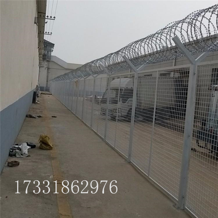 監(jiān)獄護(hù)欄網(wǎng)又稱作“Y型安全防御護(hù)網(wǎng)”,是由V型支架立柱,加強(qiáng)型焊接片網(wǎng),安全防盜連接件和熱鍍鋅刀片刺籠組成強(qiáng)度和安全防御性級(jí)別很高。近年來,被廣泛應(yīng)用在監(jiān)獄,軍事基地等高安全場所。注:如果在監(jiān)獄護(hù)欄網(wǎng)頂部加裝刀片刺絲、刀片刺繩后又很好的增強(qiáng)了安全防護(hù)性能。采用電鍍、熱鍍、噴塑、浸塑等防腐形式,具有很好的抗老化、抗曬、耐候等特點(diǎn)。其產(chǎn)品造型美觀、花色多樣,既起到圍欄作用,又起到美化作用。由于具有安全性高、防攀爬能力好,網(wǎng)片連接方式采用特制SBS緊扣件,有效防止人為的破壞性拆卸,橫向四道折彎加強(qiáng)筋,使網(wǎng)面強(qiáng)度顯著增加。