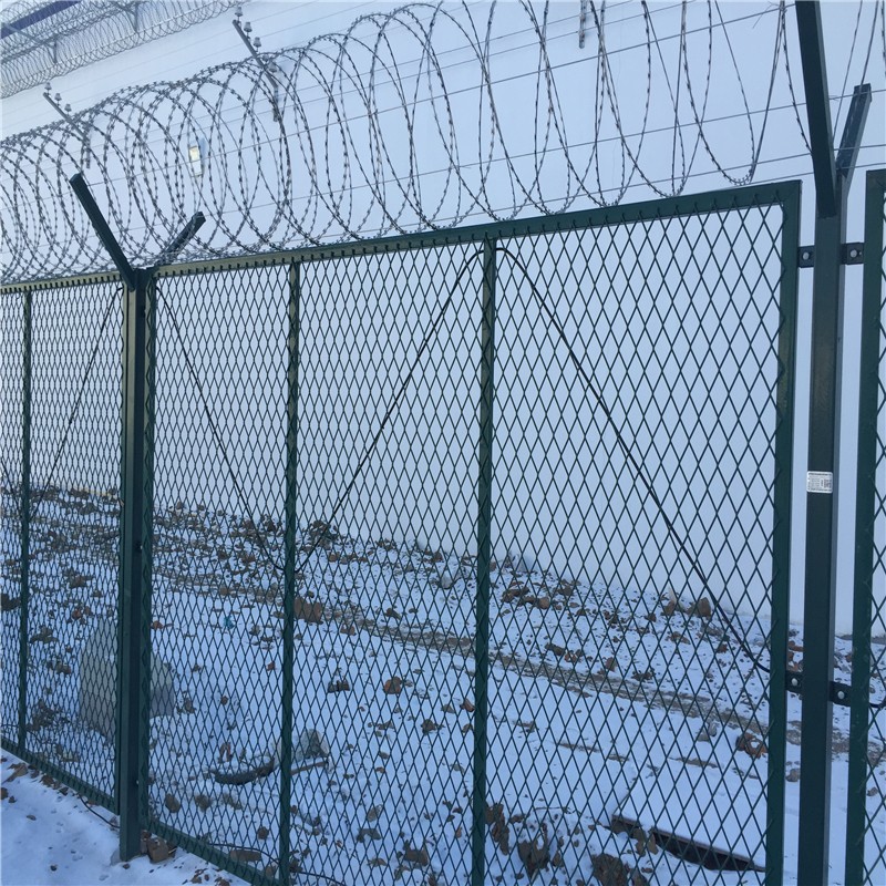 監(jiān)獄圍欄網(wǎng)可在平地上安裝,也可以在圍墻上二次安裝。監(jiān)獄圍欄網(wǎng)是為了安全需要,按照嚴(yán)格要求設(shè)計(jì)的圍欄,它也被稱為監(jiān)獄隔離柵欄。它主要使用高強(qiáng)度的鐵絲護(hù)欄網(wǎng)和高質(zhì)量刺繩護(hù)欄,該網(wǎng)由Y柱鐵絲網(wǎng)、安全防盜連接器制成,安全耐用。監(jiān)獄圍欄網(wǎng)的刀片刺網(wǎng)是一種新型的防護(hù)網(wǎng),它由尖銳的鍍鋅鋼板或不銹鋼薄板作為刀片,而鋼絲則作為芯線。監(jiān)獄圍欄網(wǎng)的刀片刺網(wǎng)具有威懾性,抗傾覆防翻越等作用,材料堅(jiān)硬,強(qiáng)度高,張力大,因造型設(shè)計(jì)獨(dú)特,不適合觸摸,因此可以達(dá)到優(yōu)良的保護(hù)隔離效果。監(jiān)獄圍欄網(wǎng)由網(wǎng)片,鐵絲網(wǎng),立柱制成,并通過低碳鋼絲焊接連接。