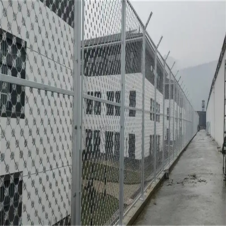 管教所鋼網(wǎng)墻在生產(chǎn)形勢及產(chǎn)品原材料的不同上邊有兩種類型,鋼絲網(wǎng)片型與焊接刀片刺繩網(wǎng)片型。這兩種只是網(wǎng)片上邊的材料不同,立柱邊框都是可以通用的。