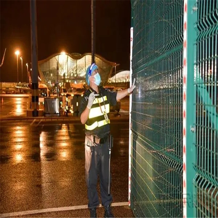 常用規(guī)格:整體高度2.5米,寬度3米,立柱采用60×60mm方管或圓管,網(wǎng)片采用4.0-6.0mm低碳鋼絲焊接,網(wǎng)孔一般為50×100mm,50×200mm及60×120mm等。表面處理一般采用鍍鋅+噴塑的雙層防腐處理方式,一般每6米或者9米設(shè)置一根斜撐來增加穩(wěn)固性。根據(jù)安全防護(hù)的等級,機(jī)場圍界的規(guī)格參數(shù)是可以調(diào)整的,機(jī)場最外圍的隔離網(wǎng)規(guī)格參數(shù)可以下調(diào),還有就是根據(jù)預(yù)算來調(diào)整。飛行區(qū)技術(shù)等級不同的機(jī)場,圍界技術(shù)標(biāo)準(zhǔn)應(yīng)有所區(qū)別,支線機(jī)場和通用航空機(jī)場若地處村落地帶時(shí),建議可以采用刺鐵絲網(wǎng),編織網(wǎng)等造價(jià)低防腐年限在5年左右的圍界;在人口較為稠密的地區(qū),飛行區(qū)圍界的安全等級和使用壽命的要求則應(yīng)提高。