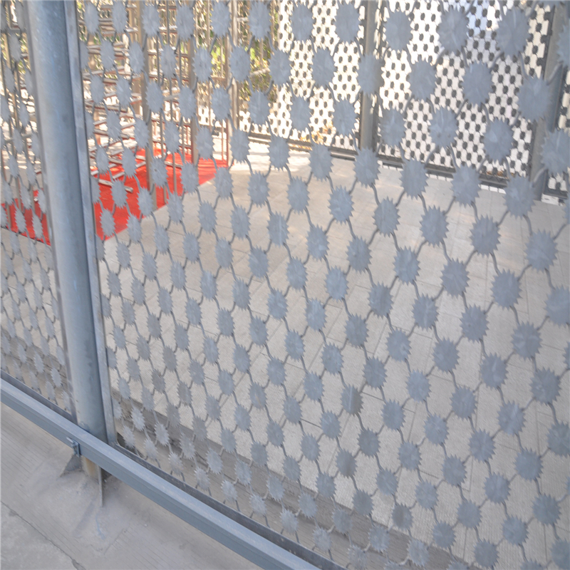 (2)監(jiān)獄太陽(yáng)花護(hù)欄網(wǎng)的上部刀片通過(guò)熱浸鍍鋅和噴涂(雙重防腐)塑料層工藝處理,厚度為0.3mm。