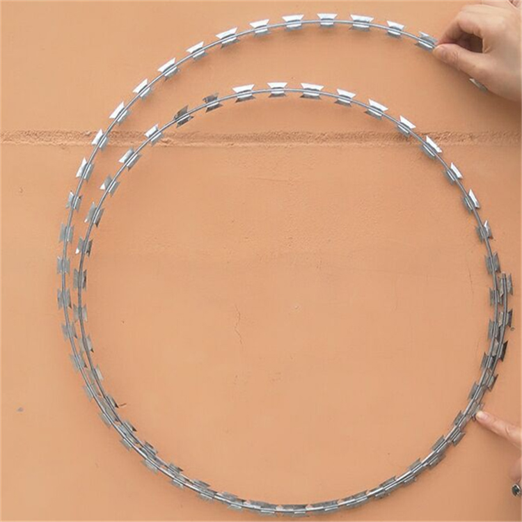 直條型刀片刺繩表面防腐處理有電鍍鋅、熱鍍鋅以及鍍鋅噴塑(顏色隨意選擇),根據(jù)客戶的要求,做不同的處理。其主要用于監(jiān)獄護(hù)欄網(wǎng)、軍事護(hù)欄網(wǎng)、機場護(hù)欄網(wǎng)、小區(qū)防盜網(wǎng)、廠區(qū)圍墻防盜網(wǎng),與其他護(hù)欄網(wǎng)相結(jié)合防護(hù)作用會很好。監(jiān)獄基本上用的都是刀片刺網(wǎng)。